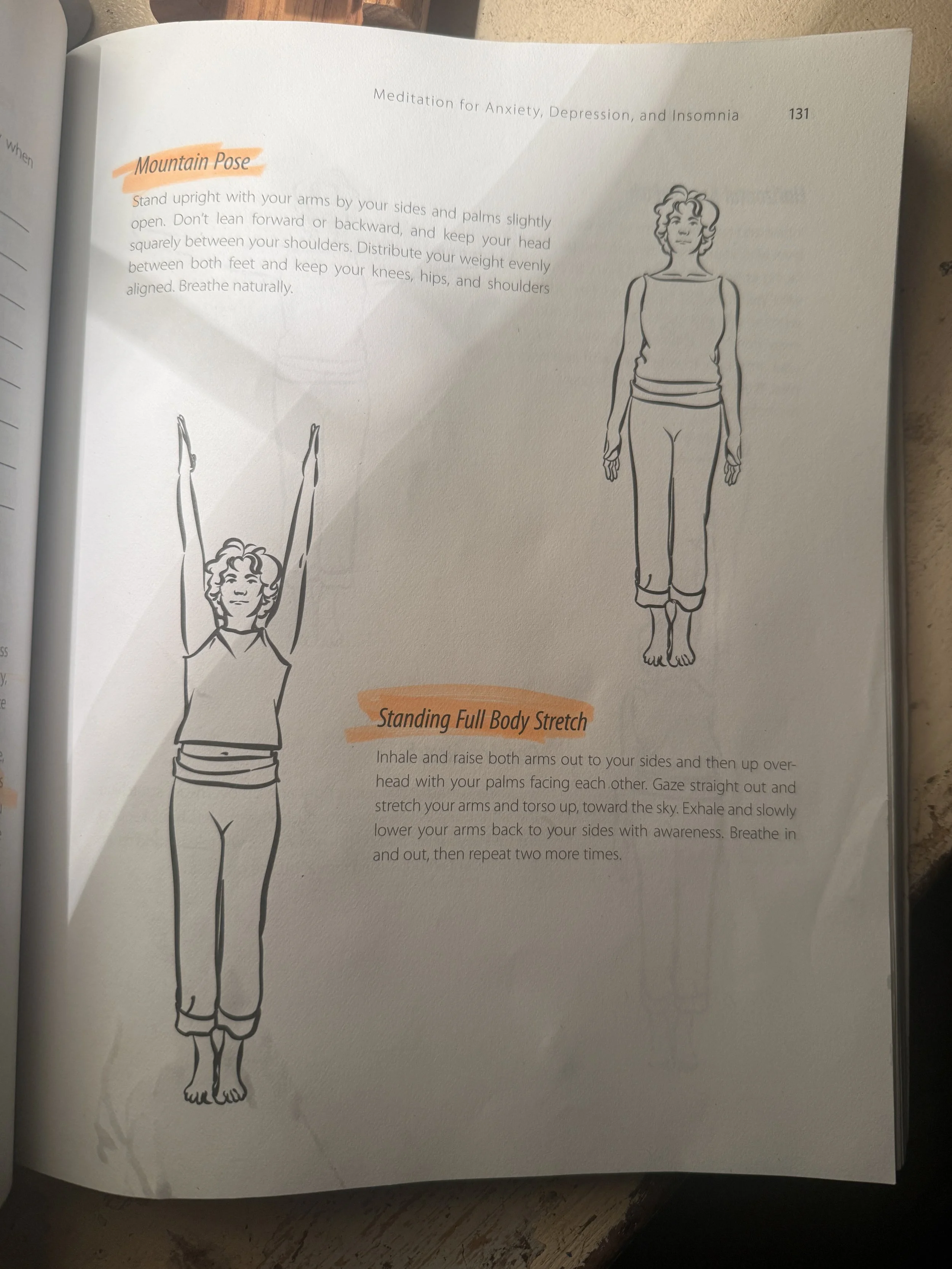 Mindful movement: Gentle yoga (child’s pose, supine full body stretch, leg stretch, etc.) / mindful movement.